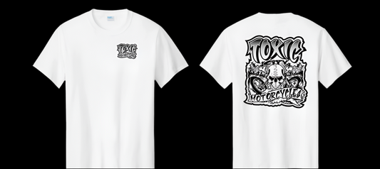A Limited Edition McKeag Art designed “Toxic City Motorcycles” T Shirt (white) Exclusively from ToxicOG Streetwear